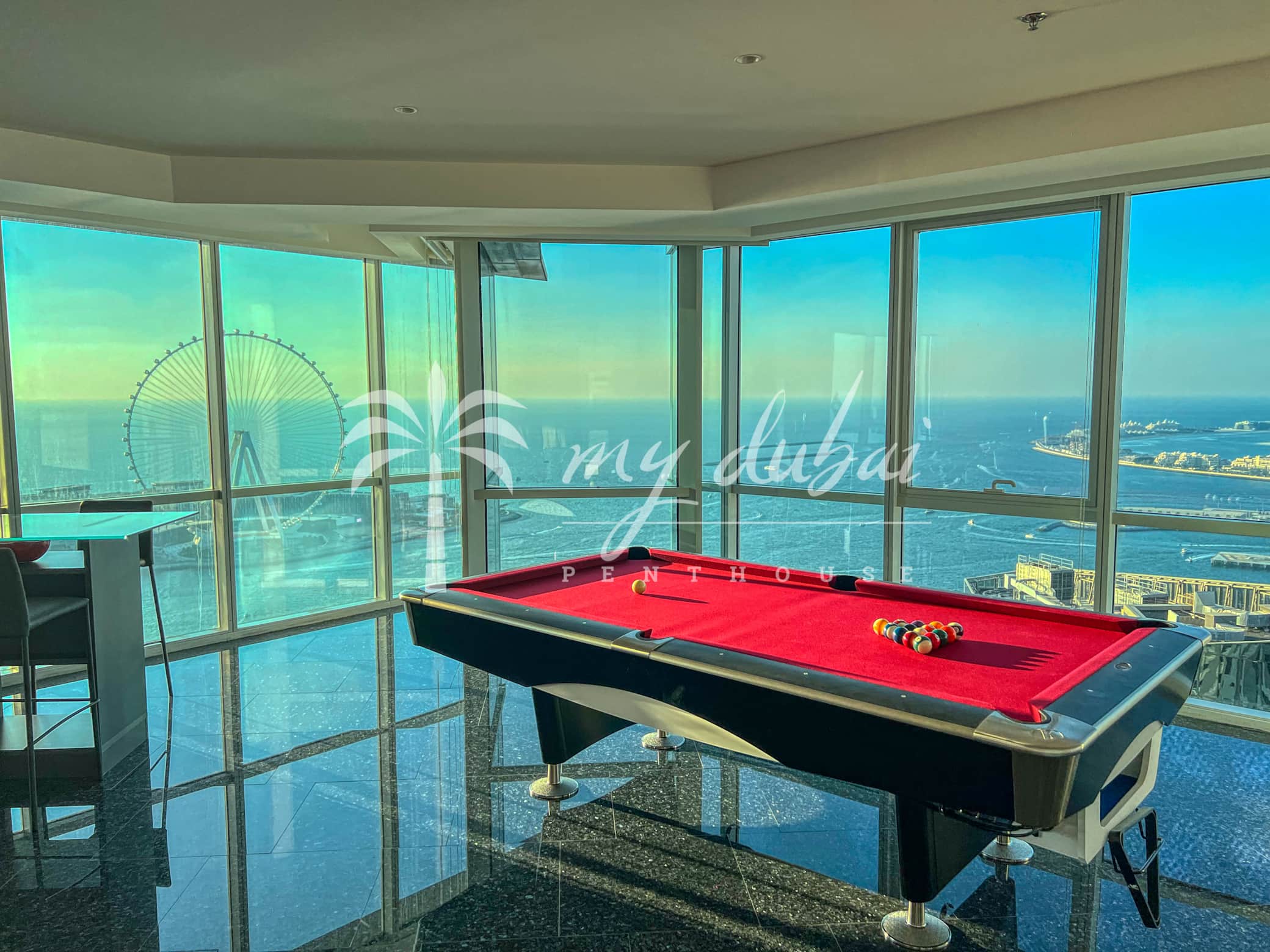 This 4000 square foot penthouse is located on the 48th floor of Al Fattan Marine Tower in the Dubai Jumeirah Beach Residence (JBR).